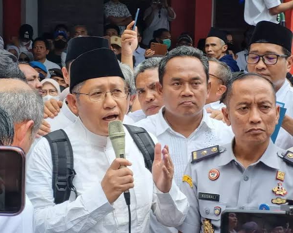Foto: Anas Urbaningrum, Mantan Ketua Umum Partai Demokrat saat menyampaikan pidato di depan Lapas Sukamiskin. (Istimewa)