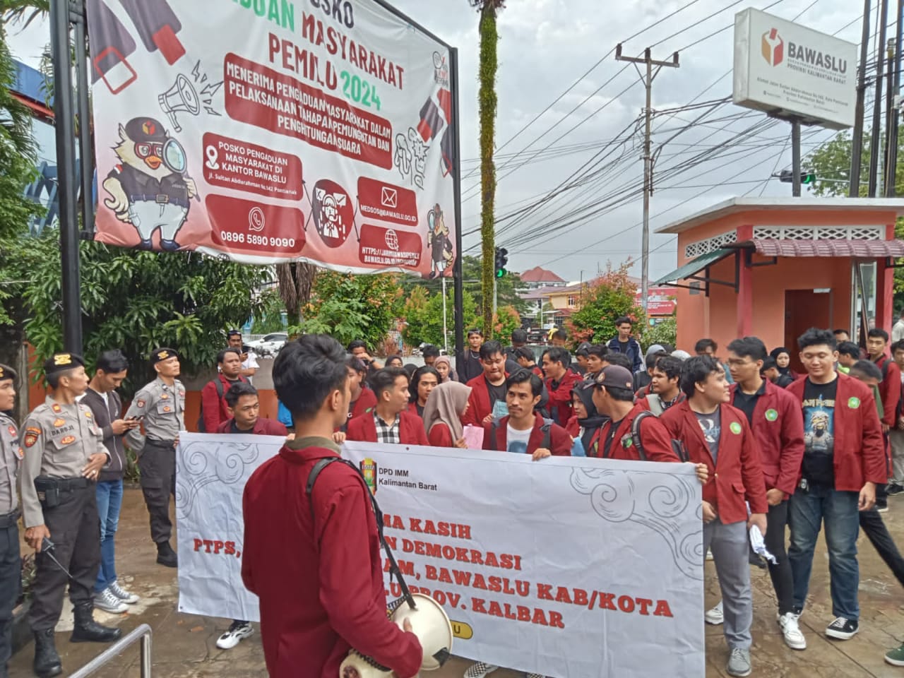 FOTO - Ratusan Massa IMM Kalbar Gelar Aksi Damai bertajuk "Terimakasih Pahlawan Demokrasi" di Depan Kantor KPU dan Bawaslu. (IST)