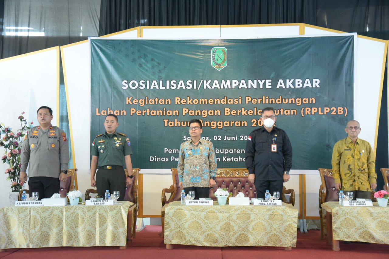 Nunemedia.id,. SAMBAS - Bupati Sambas, Satono, menghadiri kampanye akbar kegiatan Rekomendasi Perlindungan Lahan Pertanian Pangan Berkelanjutan (RPLP2B) Tahun Anggaran 2022 oleh Dinas Pertanian Ketahanan Pangan dan Holtikultura Kabupaten Sambas, di Hotel Pantura Jaya Sambas, Kamis 2 juni 2022.