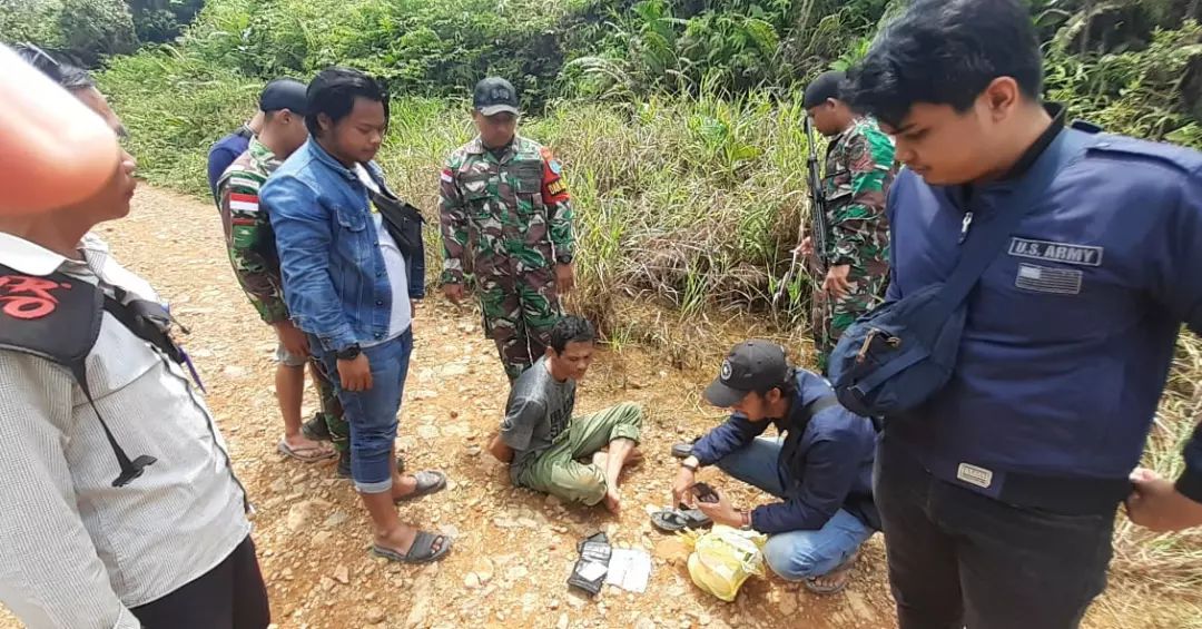 FOTO - Satuan Tugas (Satgas) Pengamanan Perbatasan (Pamtas) Republik Indonesia (RI) - Malaysia Batalyon Infanteri 645/Gardatama Yudha saat mengamankan pelaku pembawa sabu seberat 494,2 gram di Dusun Segumun, Desa Lubuk Sabuk, Kecamatan Sekayam, Kabupaten Sanggau pada Rabu 01 Juni 2022. (Pendam XII/Tpr)