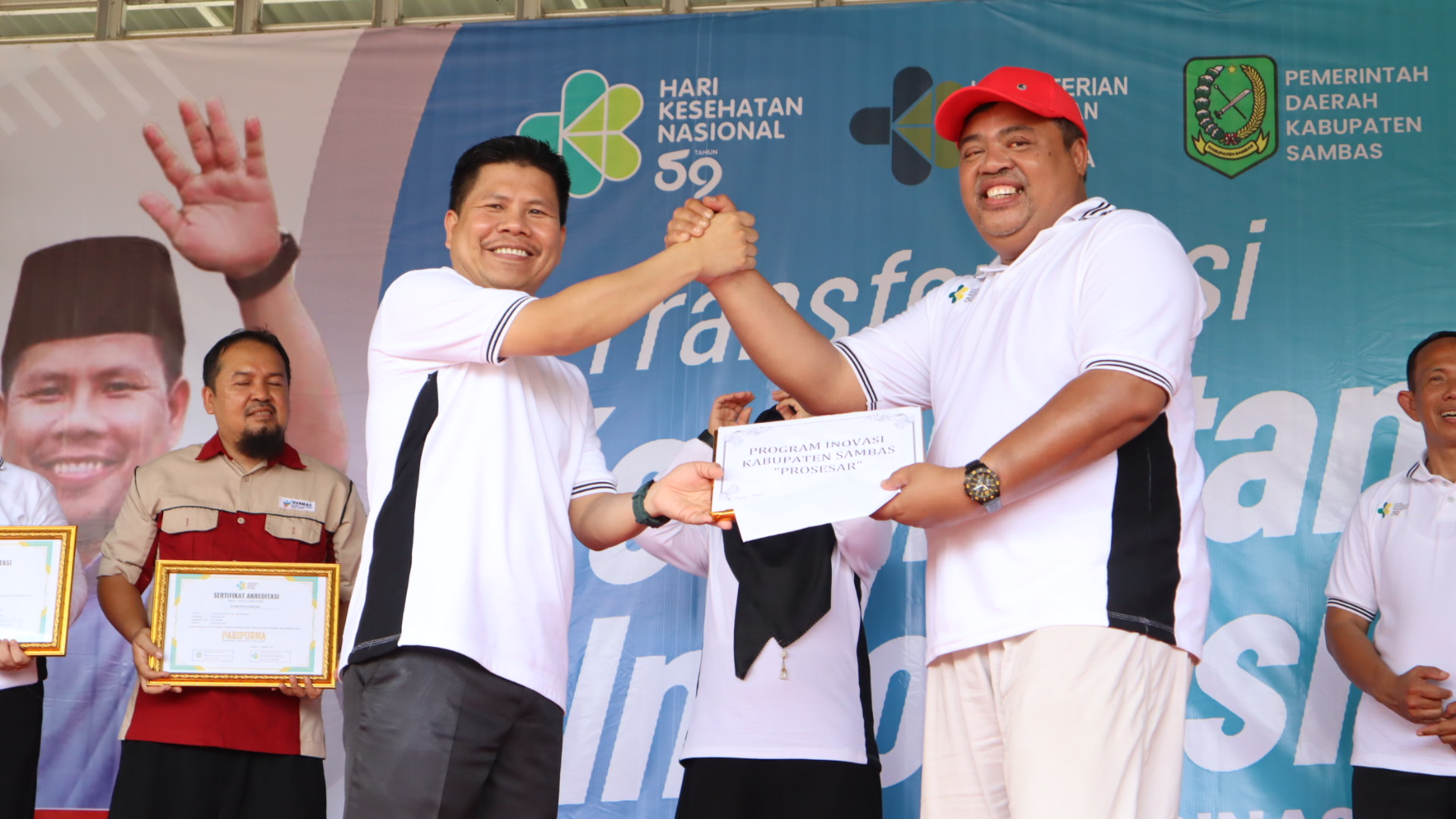 Bupati Sambas, Satono yang hadir di kesempatan itu mengucapkan selamat atas peringatan Hari Kesehatan Nasional ke-59.